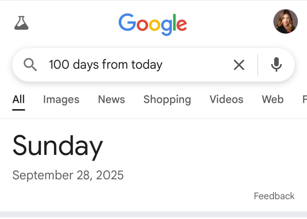 Sunday, September 28, 2025 is 100 days from today! I laughed and say out loud “I see you there God”!